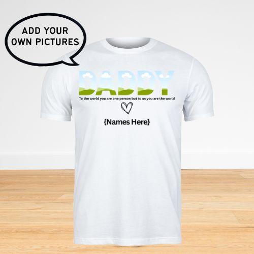 Just in time for Father's Day, this t-shirt can be customized with photos within the "Daddy" lettering. The name or names can also be customized to the bottom of the shirt.