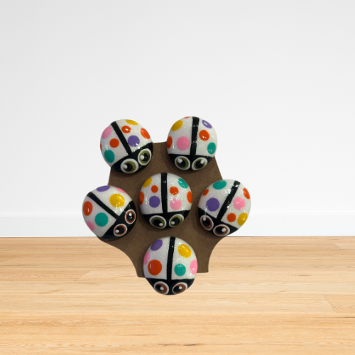 Contains six decorative mini rocks per pack. All are hand-painted and sealed with resin. Available in different designs and colors. Each rock is about 1/2 inch in size.